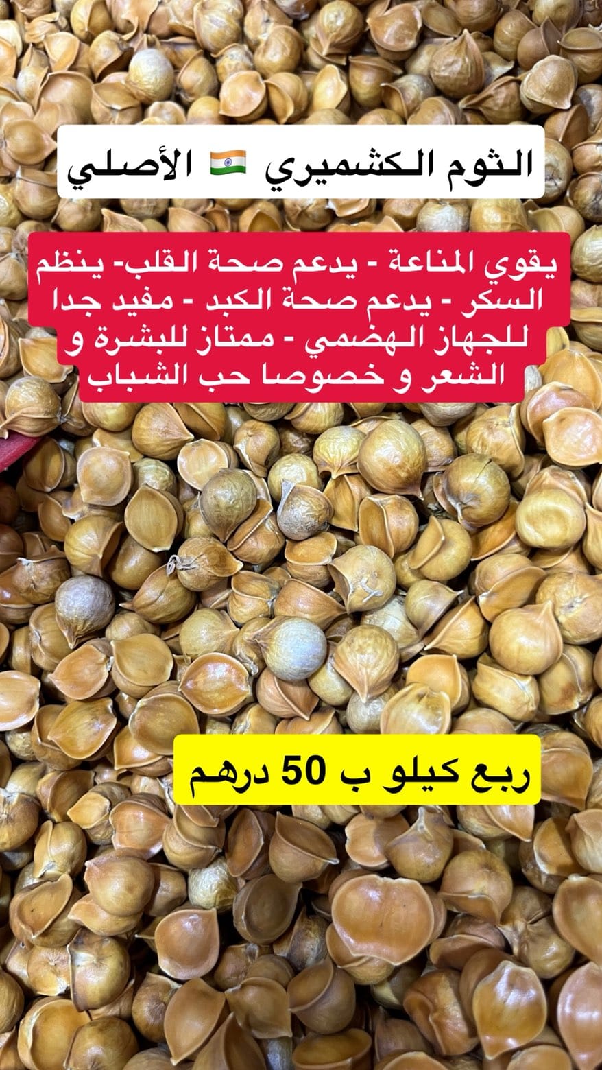 الثوم الكشميري (أو ثوم الجبل ذو الفص الواحد) هو نوع نادر وغني بمضادات الأكسدة ومركب الأليسين، ينمو في جبال الهيمالايا. يُعرف بقدرته الفائقة على تعزيز المناعة، خفض الكوليسترول الضار والدهون الثلاثية بمقدار 20ملغم/ديسيلتر تقريبًا، تحسين صحة القلب، علاج نزلات البرد والسعال، وتنظيم سكر الدم، مما يجعله أقوى بمرات من الثوم العادي.