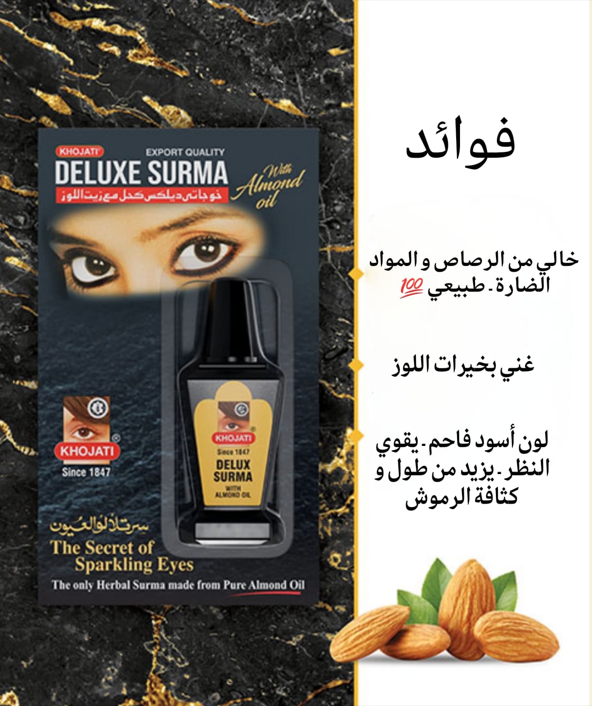 ✔️ هو كحل طبيعي 100%، مصنوع من الأعشاب، وخالٍ من الرصاص. يتميز هذا الكحل فائق النعومة والمقاوم للتلطخ بجعل عينيكِ تبدوان مشرقتين ولامعتين.